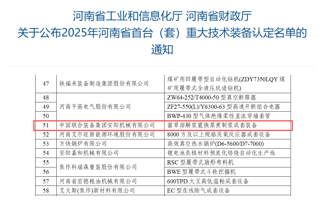 硬核突破!安阳机械菌草制浆装备获评 2025 年河南省首台(套)​重大技术装备