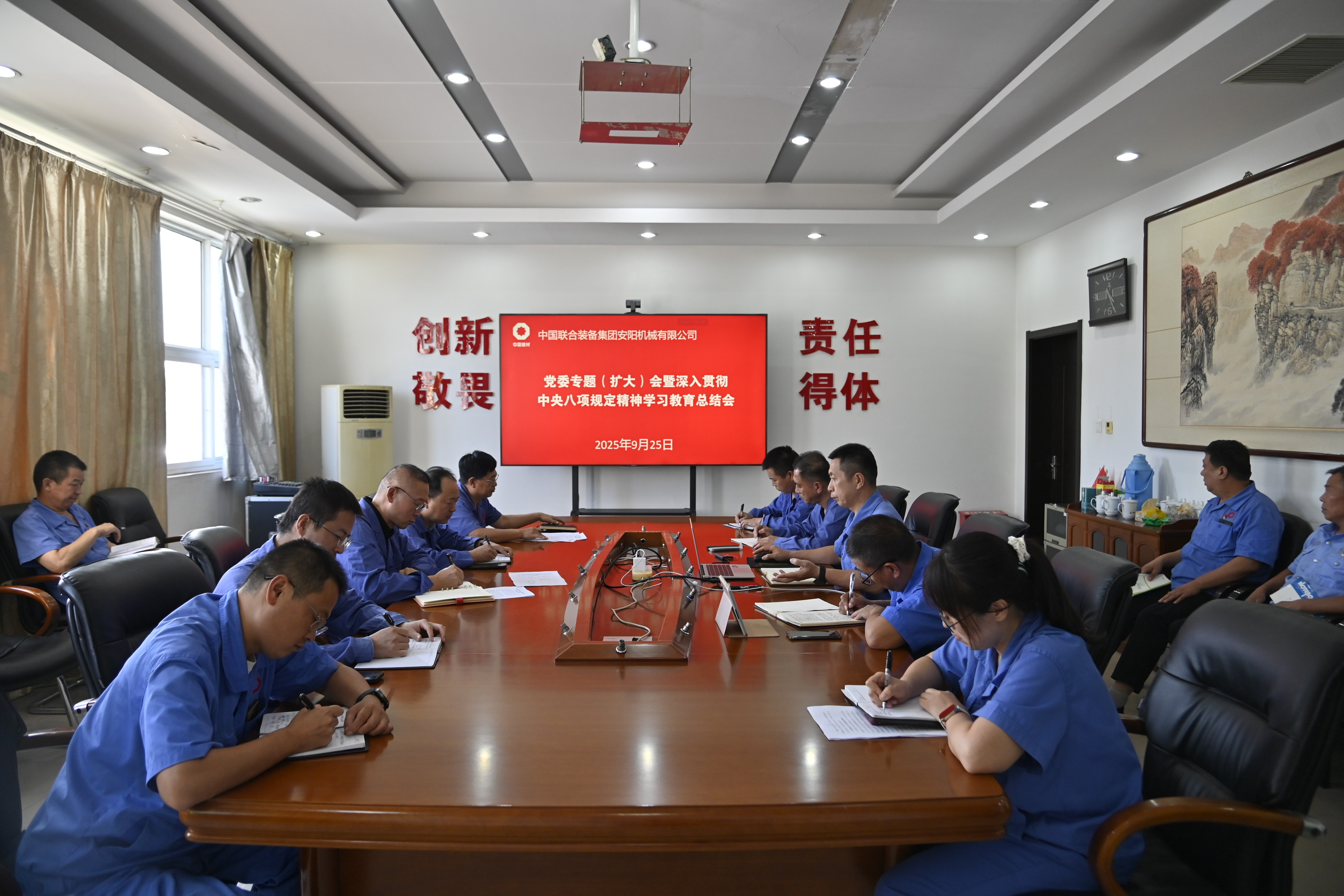 9月25日,安阳机械召开党委专题(扩大)会暨深入贯彻中央八项规定精神学习教育总结会。会议传达学习习近平总书记相关重要指示精神,以及中央、国务院国资委、中国建材集团、凯盛集团、中国联合装备党委会议精神,全面回顾公司学习教育成效与经验,分析现存问题,并部署巩固成果、推动作风建设常态化长效化工作。公司党委书记、董事孙兴华主持会议并总结讲话,党委副书记、纪委书记陈志勇报告学习教育总体情况。