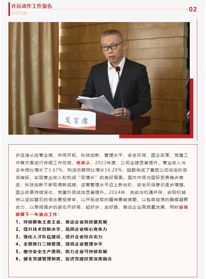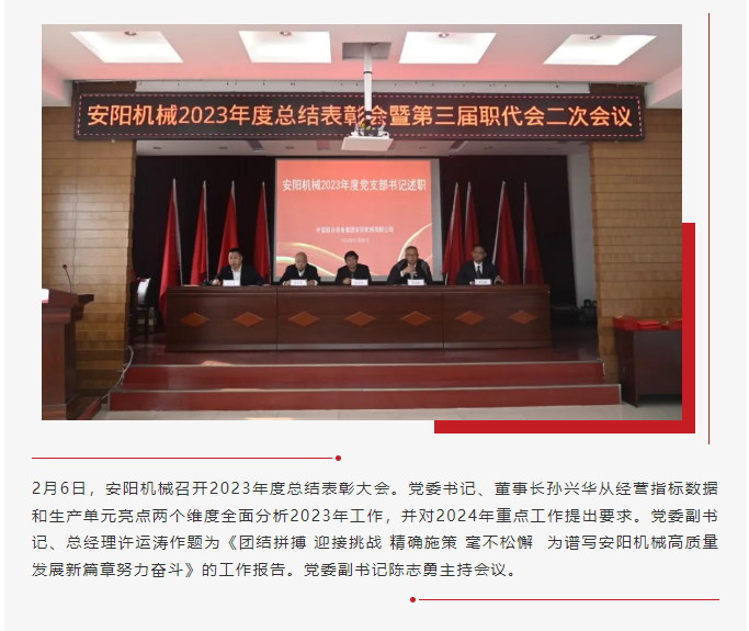 安阳机械召开2023年度工作总结表彰大会暨第三届职代会二次会议
